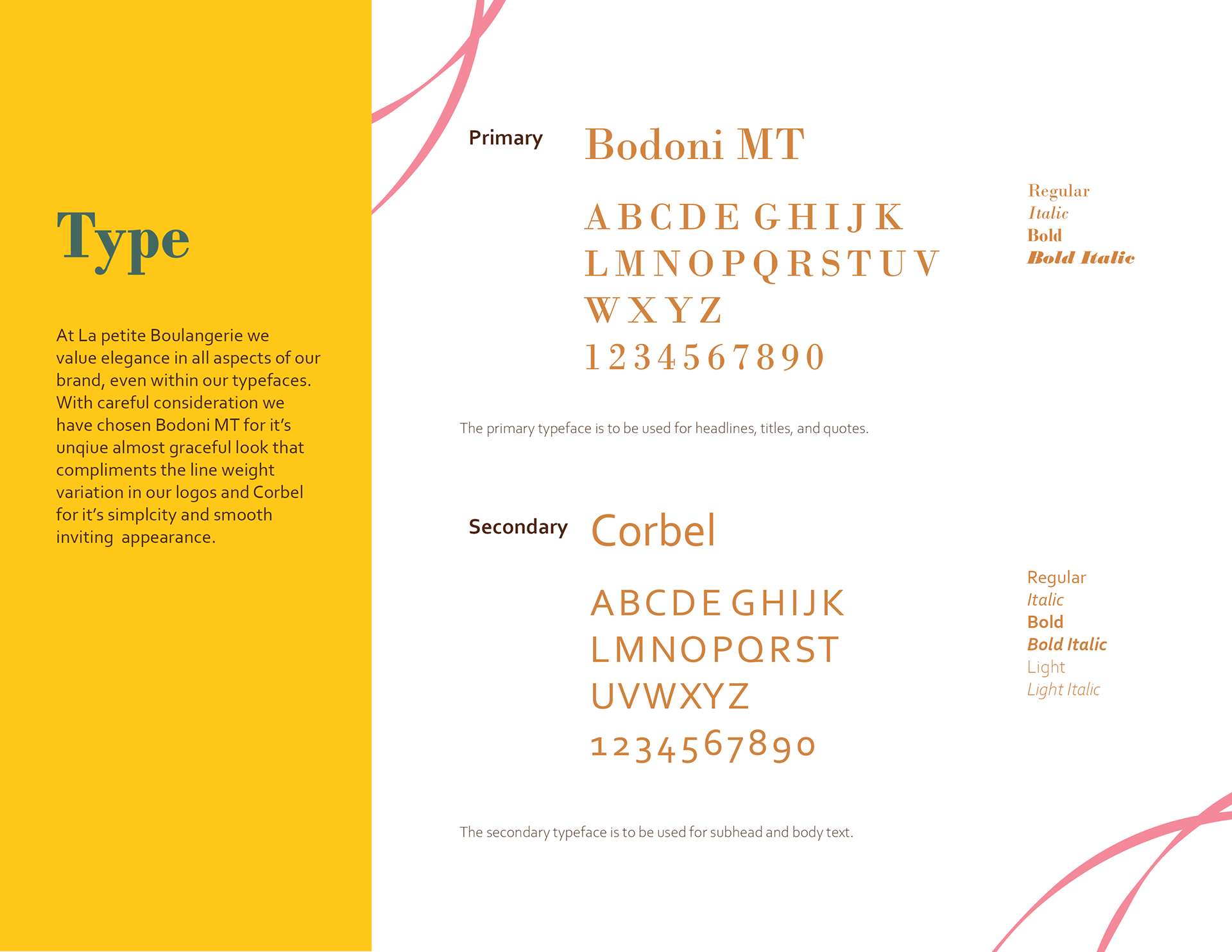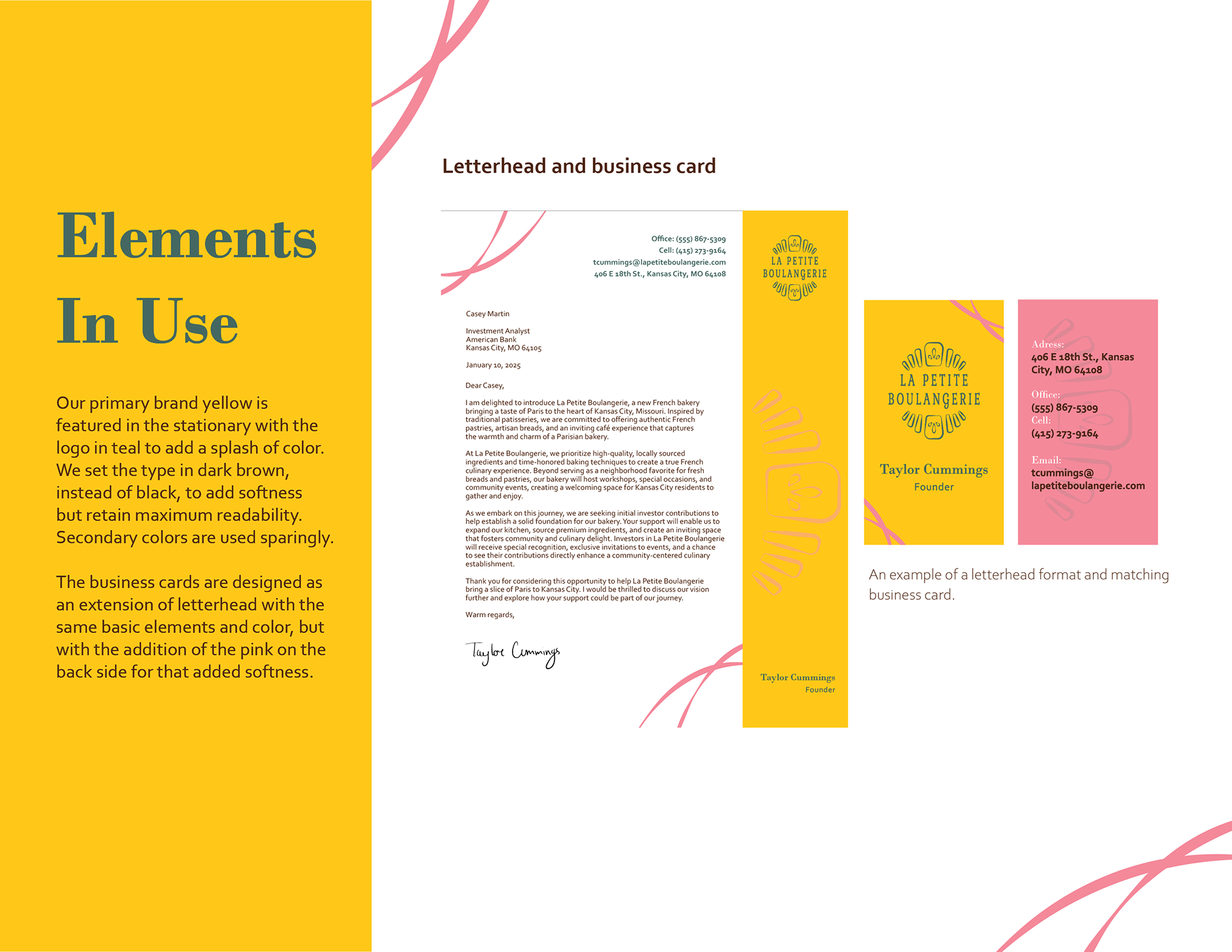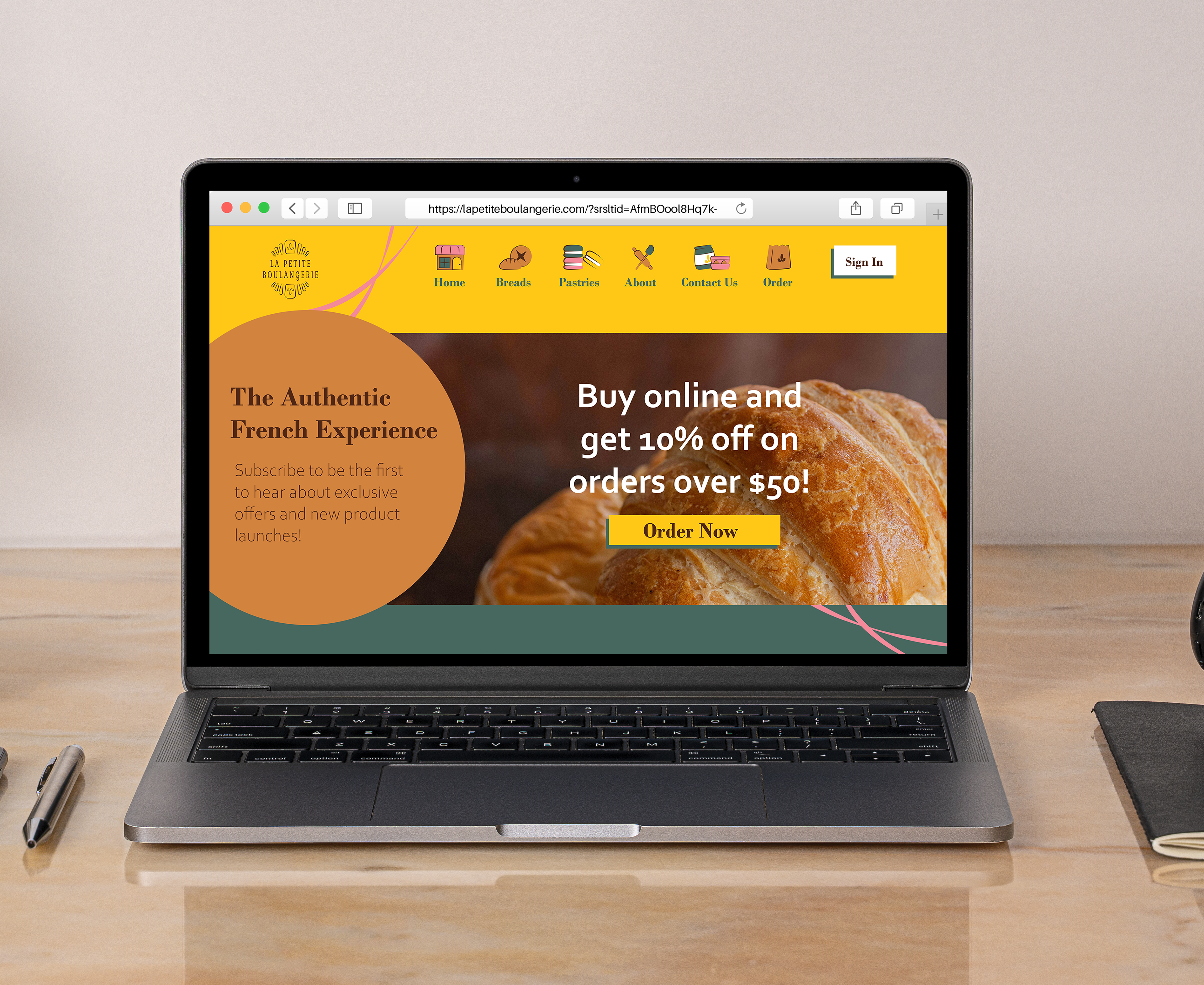 Le Petite Boulangerie is a fictional French bakery that I was tasked with creating a brand guide for. From the logo to the photography I created and choose each elements that made up this brand. When designing the visual tone for this bakery I aimed for it to look bright and bold, but also sophisticated. I made sure the brand was cohesive as much as possible. I kept this in mind when I created the website. It combines all elements of the brand while still feeling unified to the guide. There are additional mockups for the logo and the business card to expand on upon the brand.